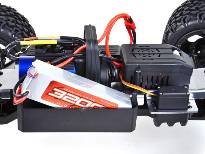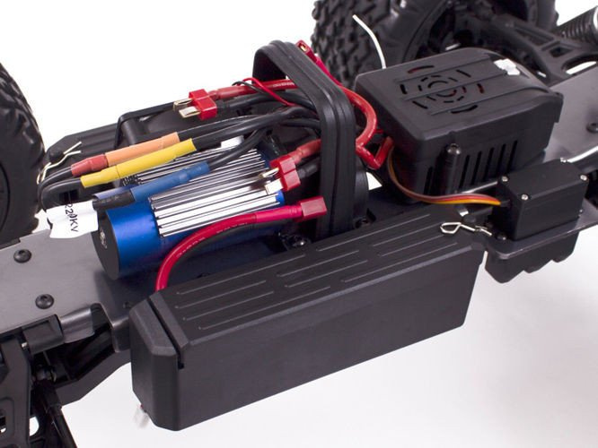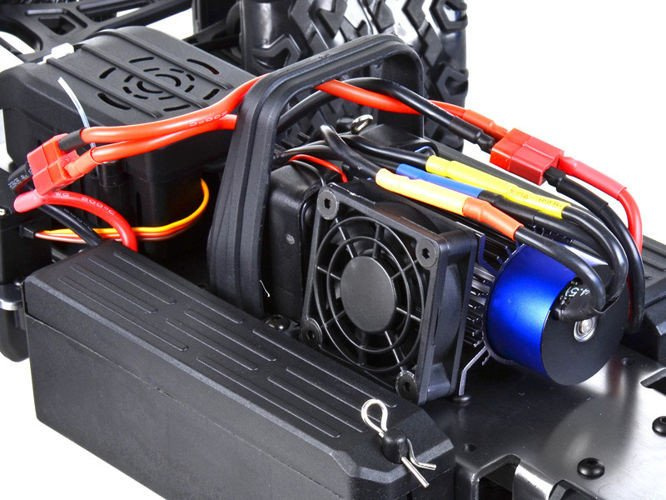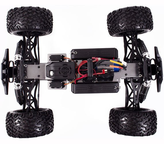 Zawieszenie przód/tył pracuje na aluminiowych olejowych amortyzatorach, przeniesienie napędu na koła za pomocą półosi typu kardana, płyta podwozia wykonana z aluminium, złącza akumulatora typu T-connect DEANS. Silnik oraz regulator posiada chłodzenie oraz uszczelnienie przed wodą w przypadku jazdy po mokrym terenie.