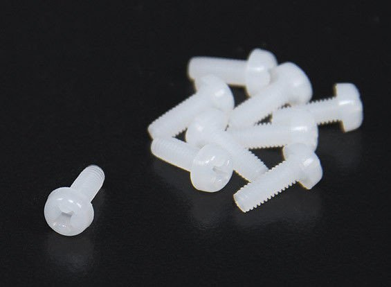 Nylonowe śróbki 8 x 3 mm z łbem wypukłym pod śrubokręt gwiazdkowy, do skręcania płyt węglowych oraz szkalanych stosowanych w modealch dronów .