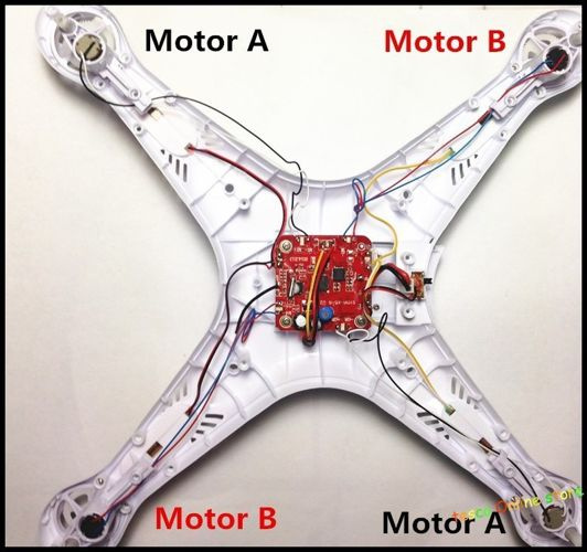 Oferowany silnik jest dedykowany dla ramion i śmigieł o symbolu "A" silnik charakteryzuje się przewodami w kolorze czarno-białe długości 13 cm, jest to istotne z uwagi na kierunek obrotu śmigieł.