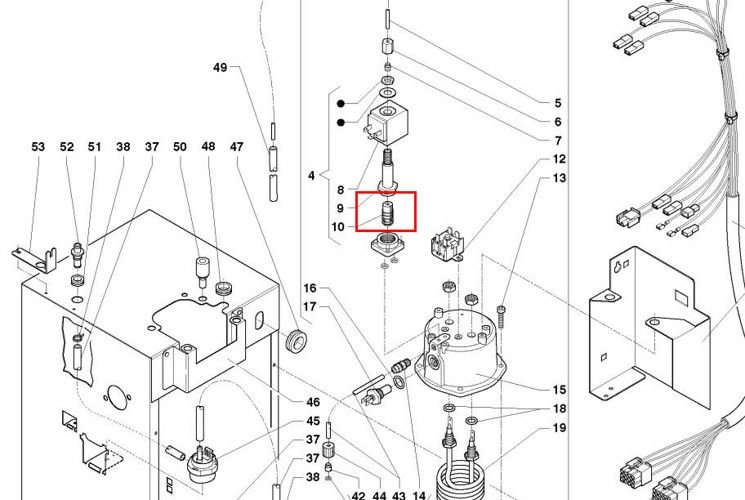 Rdzeń dużego elektrozaworu 3-drożnego ODE, odpowiadającego za parzenie kawy ziarnistej w bojlerze ciśnieniowym ze sprężynką zewnętrzną.