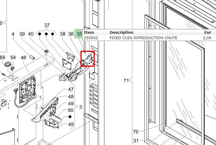 element plastikowy który kieruje w pierwszym etapie monety do wrzutnika w automatach Necta :