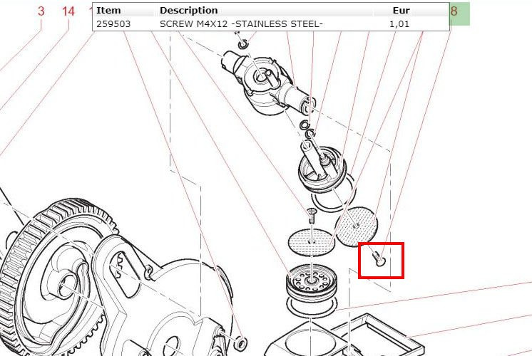 śruba przykręcająca górne sitko zaparzacza espresso