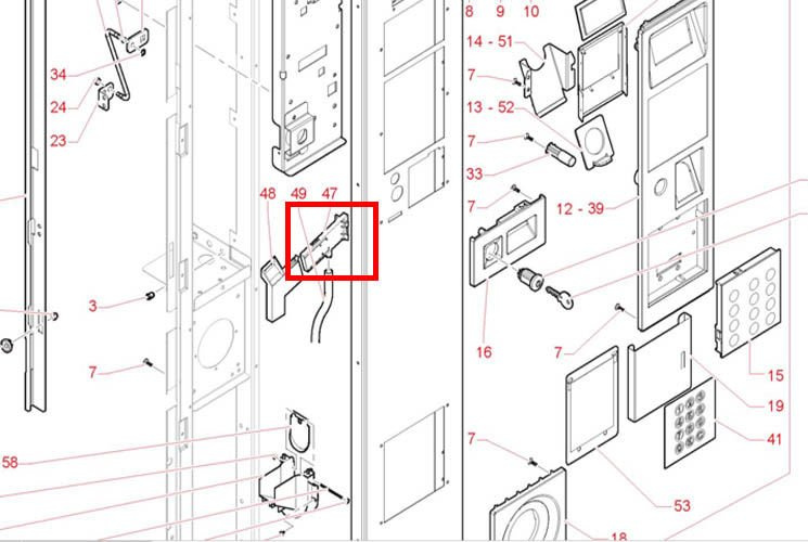 Wlot monet z pionowym otworem na przednim panelu, ma od wewnątrz drzwi zlot kierujący do wrzutnika złożony z 2 części , to jest górna.