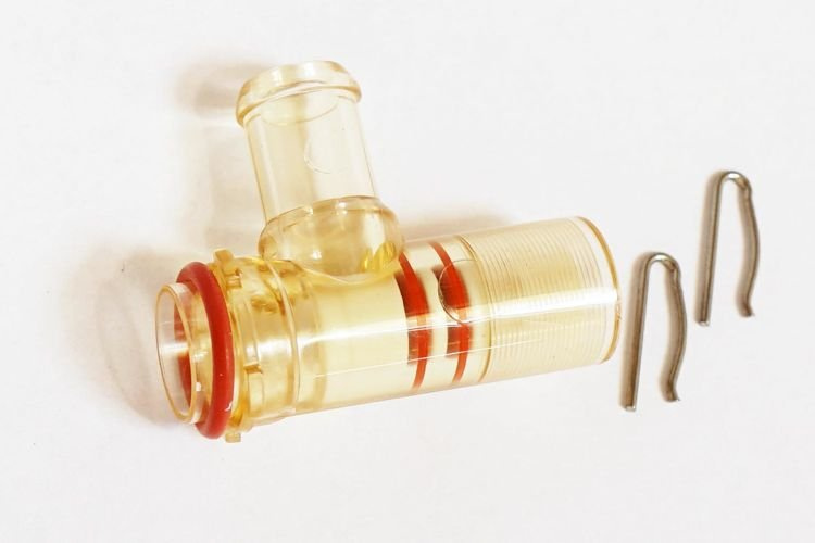 Część wylewki wraz z regulacją i uszczelkami elektrozaworów Instant Necta, w starszych modelach nablatowych.