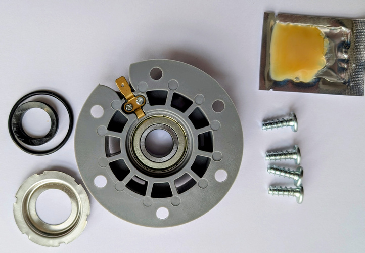 Ułożyskowanie po obu stronach jest identyczne. Aby mieć komplet do jednej pralki wystarczy zakupić dwie sztuki tego zestawu.